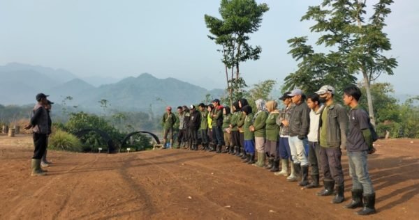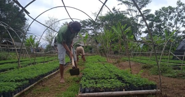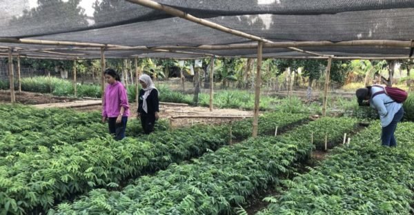 The clove tree, known as cengkeh is an evergreen tree native to the North Maluku Islands of Indonesia. Its aromatic flower buds are highly valuable due to their competitive prices in the market. This species is one of the trees we cultivate to provide income opportunities for our tree growers. (Above) Clove tree seedlings are growing taller in our Ciminyak nursery.