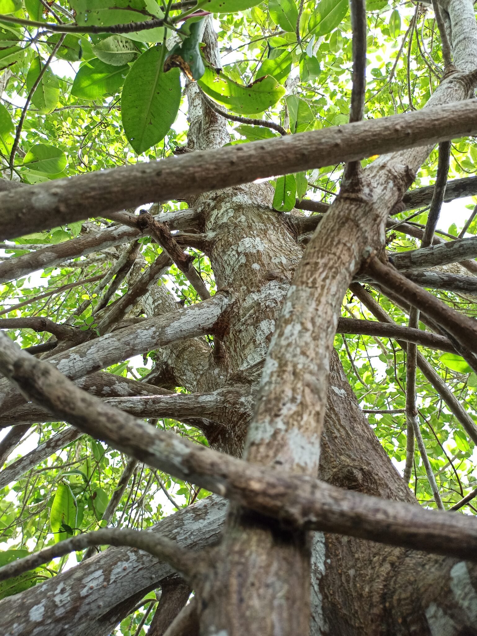 The Rhizophora mucronata closely interacts with crabs, as they often drop old leaves to the ground where crabs eagerly feed on as their favorite food. In return, these crabs help the trees to remove dead organic material beneath the trees, such as dead roots.